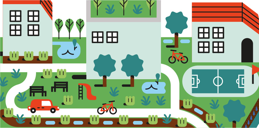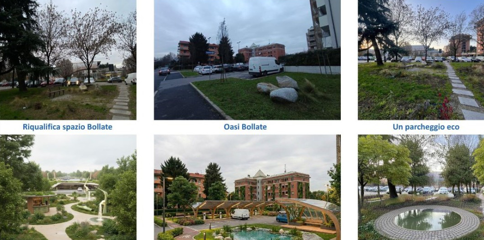 Gli interventi realizzati interessano spazi pubblici – parcheggi, piazze, sedi stradali e aree verdi – riqualificati mediante soluzioni naturali, con l’obiettivo di drenare e immagazzinare localmente l’acqua piovana, riducendo il carico sulla rete fognaria, in caso di forti piogge.