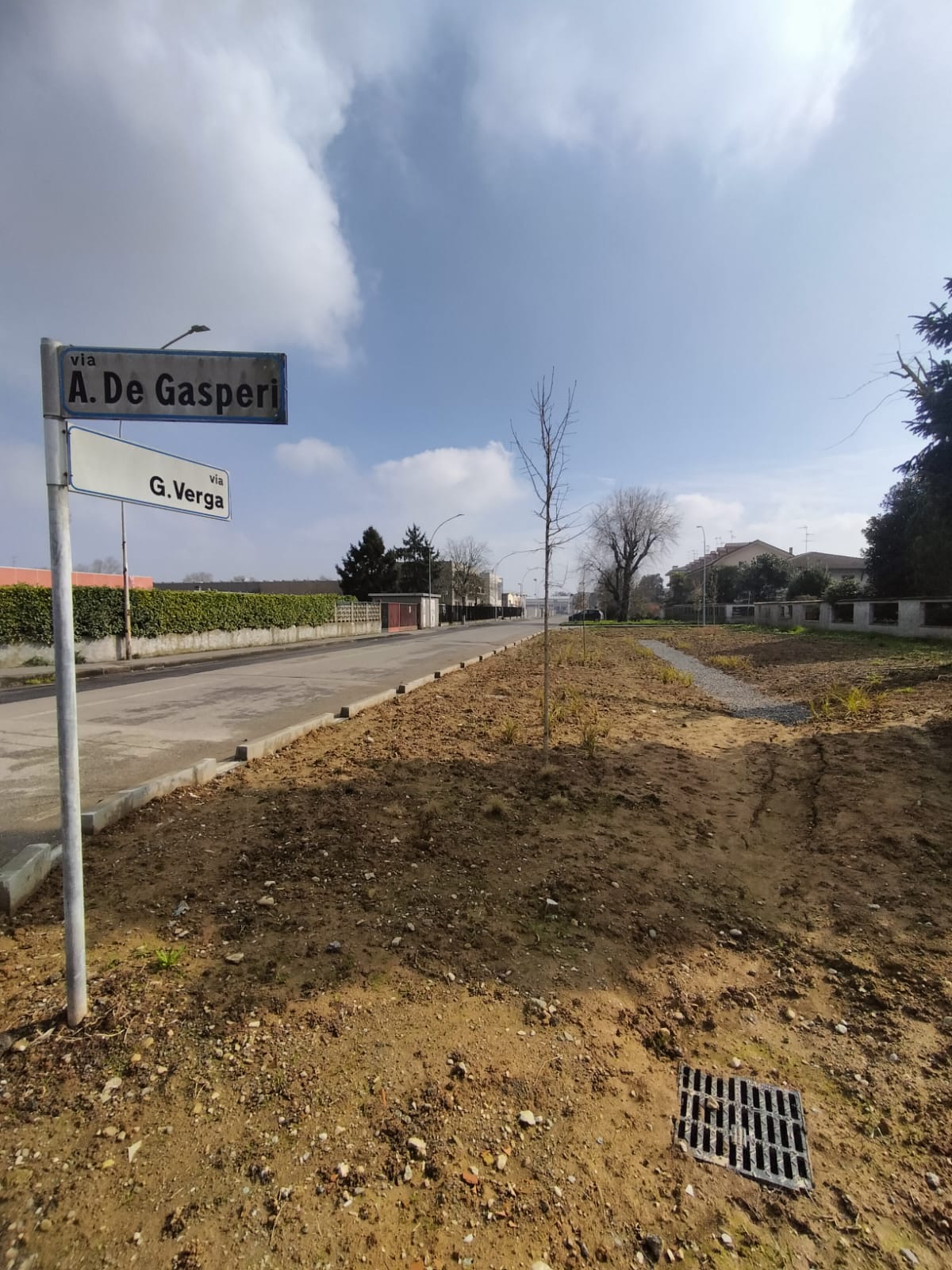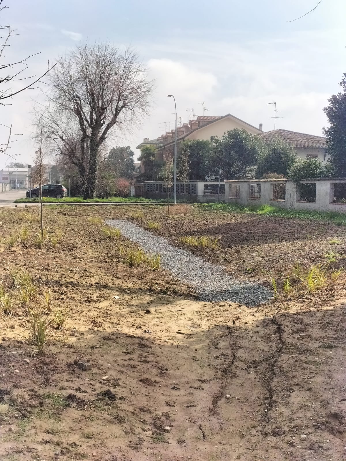 Su impulso dell’amministrazione comunale, l’area oggetto di intervento – situata in un contesto urbano a prevalente destinazione residenziale – è stata interessata da un progetto di alleggerimento della rete di drenaggio attraverso l’introduzione di soluzioni di drenaggio urbano sostenibile (SuDS). In precedenza, lo spazio era occupato da un parcheggio tradizionale, caratterizzato da superfici impermeabili che contribuivano al rapido deflusso delle acque meteoriche verso la rete fognaria.