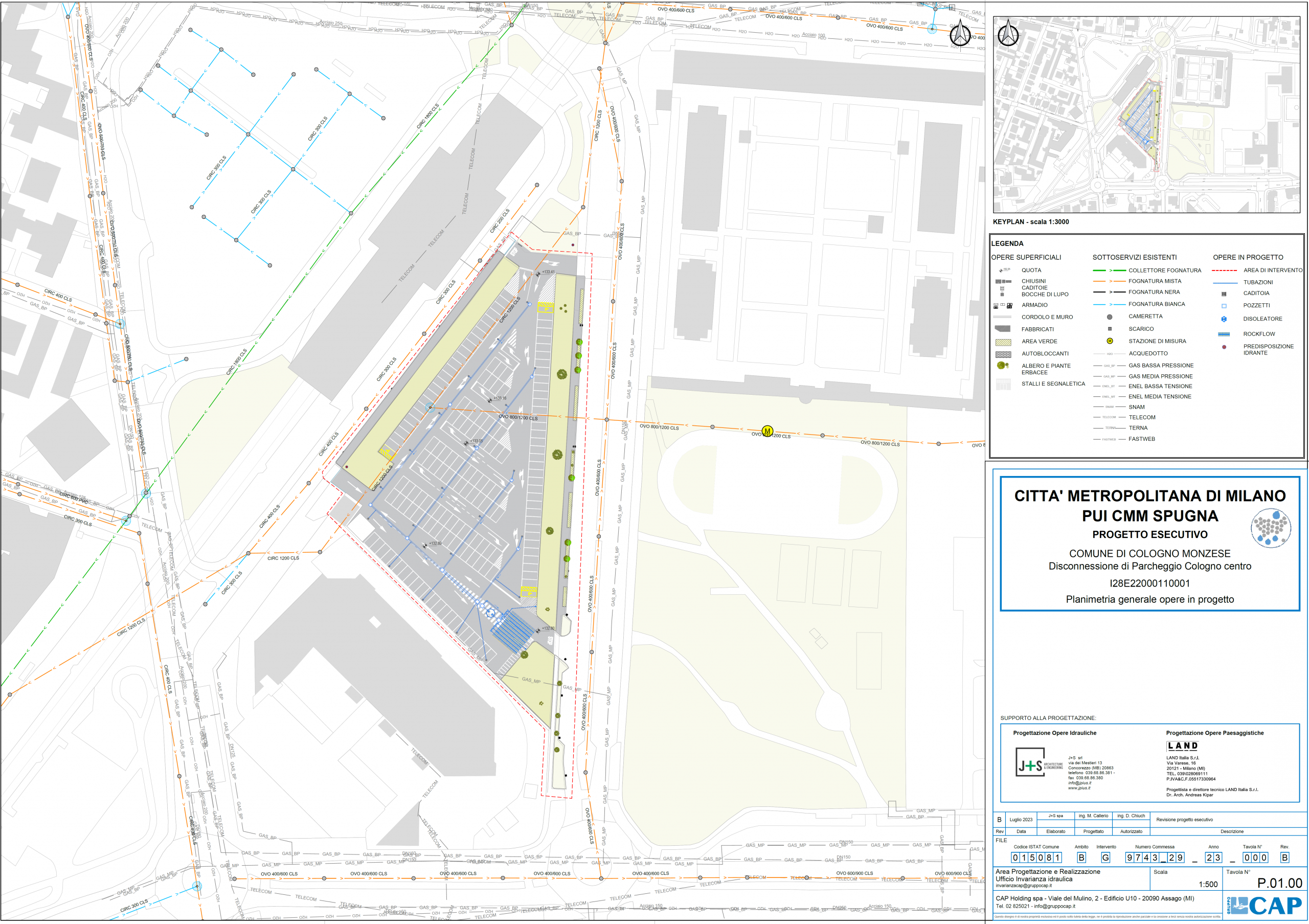 A Cologno Monzese, lungo la linea metropolitana nelle vicinanze della stazione di Cologno Centro, un’ampia area adibita a parcheggio è stata rigenerata e migliorata per quanto riguarda la gestione delle acque meteoriche.