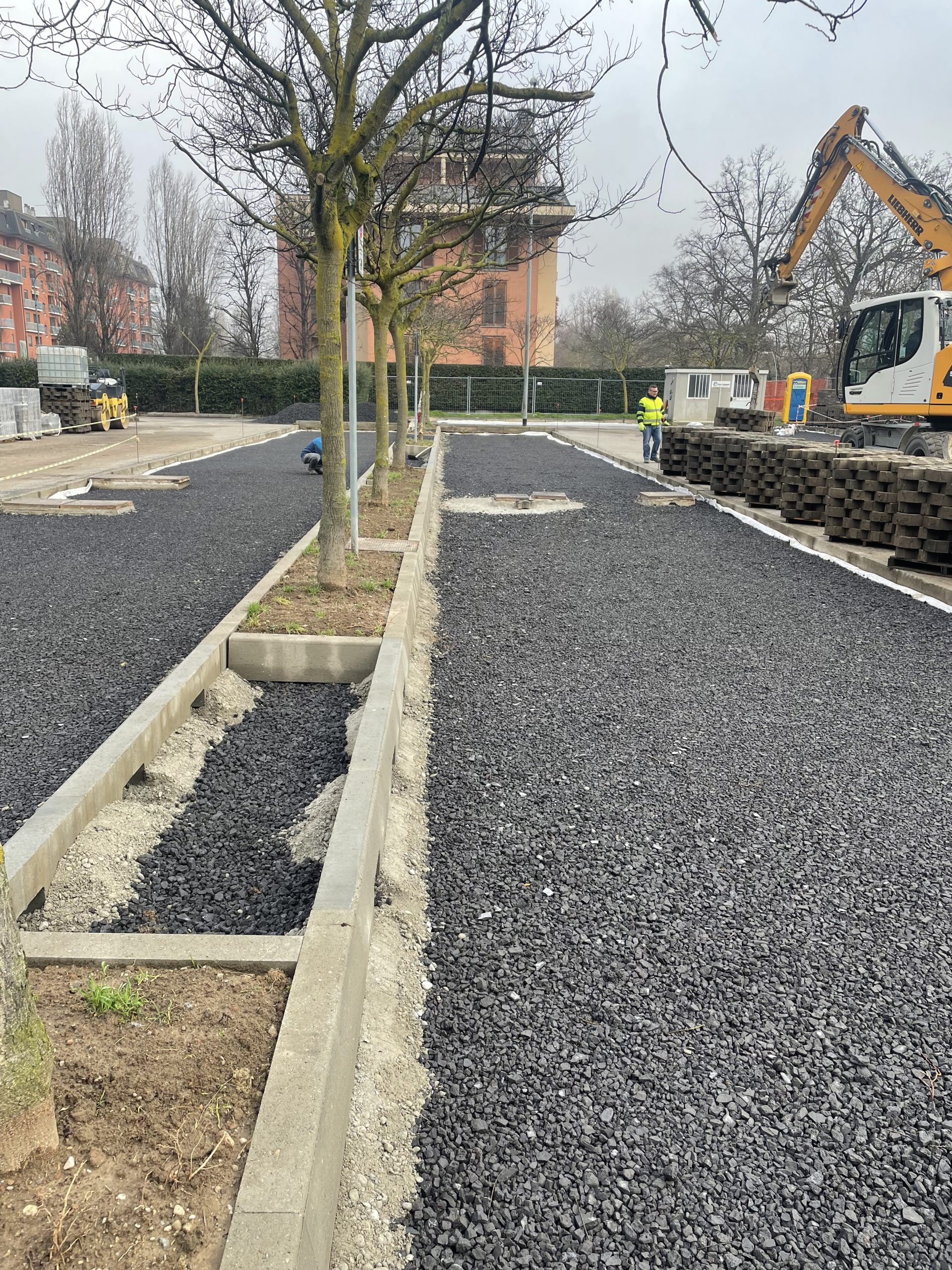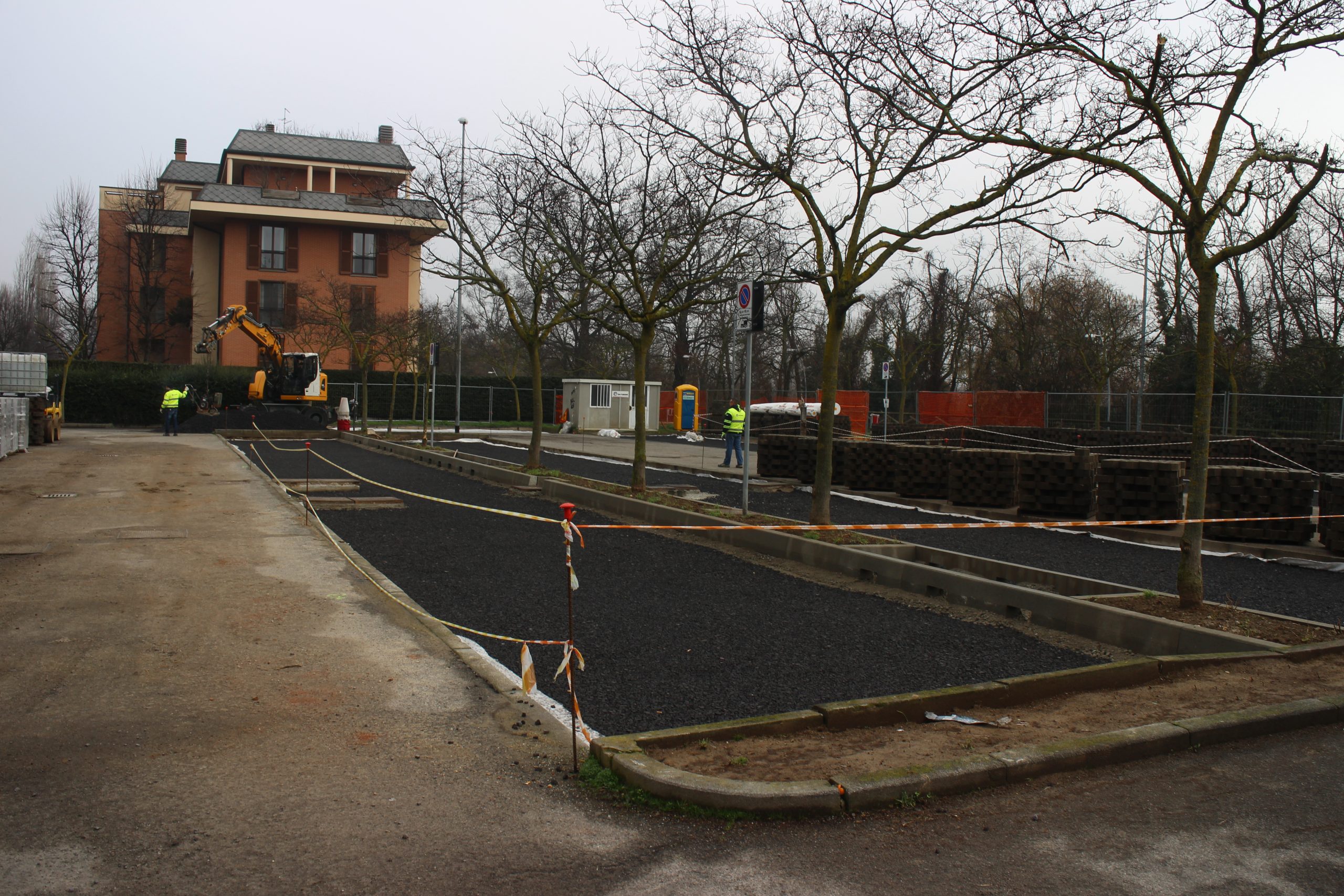 Uno dei sei interventi del progetto “Città metropolitana Spugna” realizzati nel comune di Assago riguarda un parcheggio in area residenziale urbana in via Matteotti 18, che prima dell’intervento si mostrava con pavimentazione Green Cross. L’obiettivo del progetto è quello di migliorare la gestione del rischio idraulico-idrologico, riducendo il deflusso superficiale e promuovendo l’infiltrazione nel suolo. Sono stati adottati Sistemi di Drenaggio Urbano Sostenibili (SUDS), tra cui pavimentazioni permeabili per gli stalli, utilizzo di calcestruzzo drenante e trincee drenanti. In corso d’opera si è resa necessaria la modifica di alcune soluzioni progettuali: ad esempio, una sola trincea drenante più grande, è stata realizzata a causa della presenza di un’interferenza con l’impianto di illuminazione. Nella scelta e nel reperimento dei materiali, è stata posta una notevole attenzione a materiali con certificazioni EPD (Environmental Product Declaration) come, ad esempio, la ghiaia utilizzata nelle trincee drenanti; al riutilizzo di materiali già utilizzati nell’area: il 20% degli autobloccanti sono stati riciclati e i cordoli preesistenti sono stati mantenuti nella realizzazione del nuovo progetto. A conclusione dell’intervento, nelle aiuole e nelle aree verdi dell’intervento sono state piantumate 280 nuove piante erbacee tra Carex buchananii, Phlomis russeliana e Verbena bonariensis.