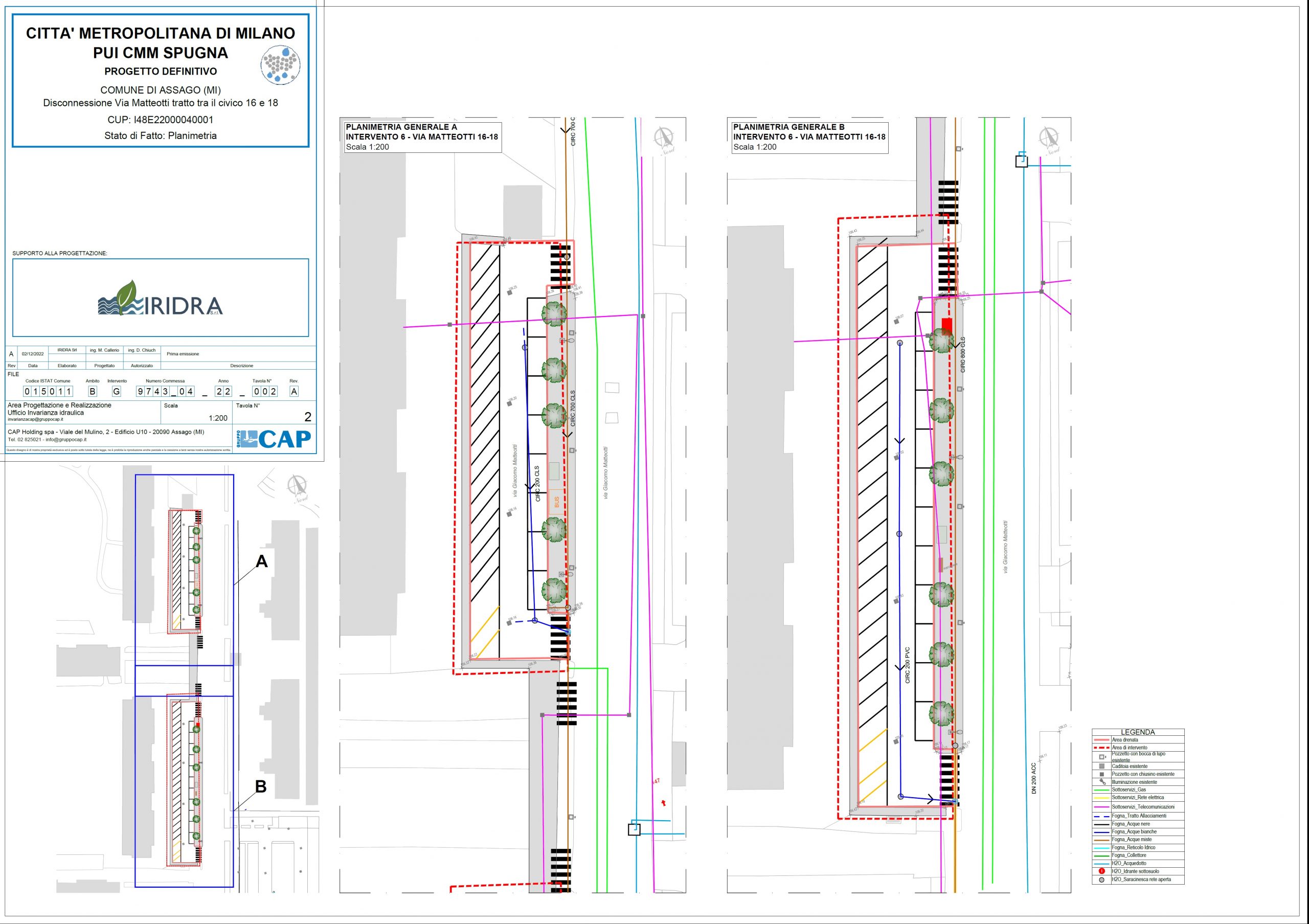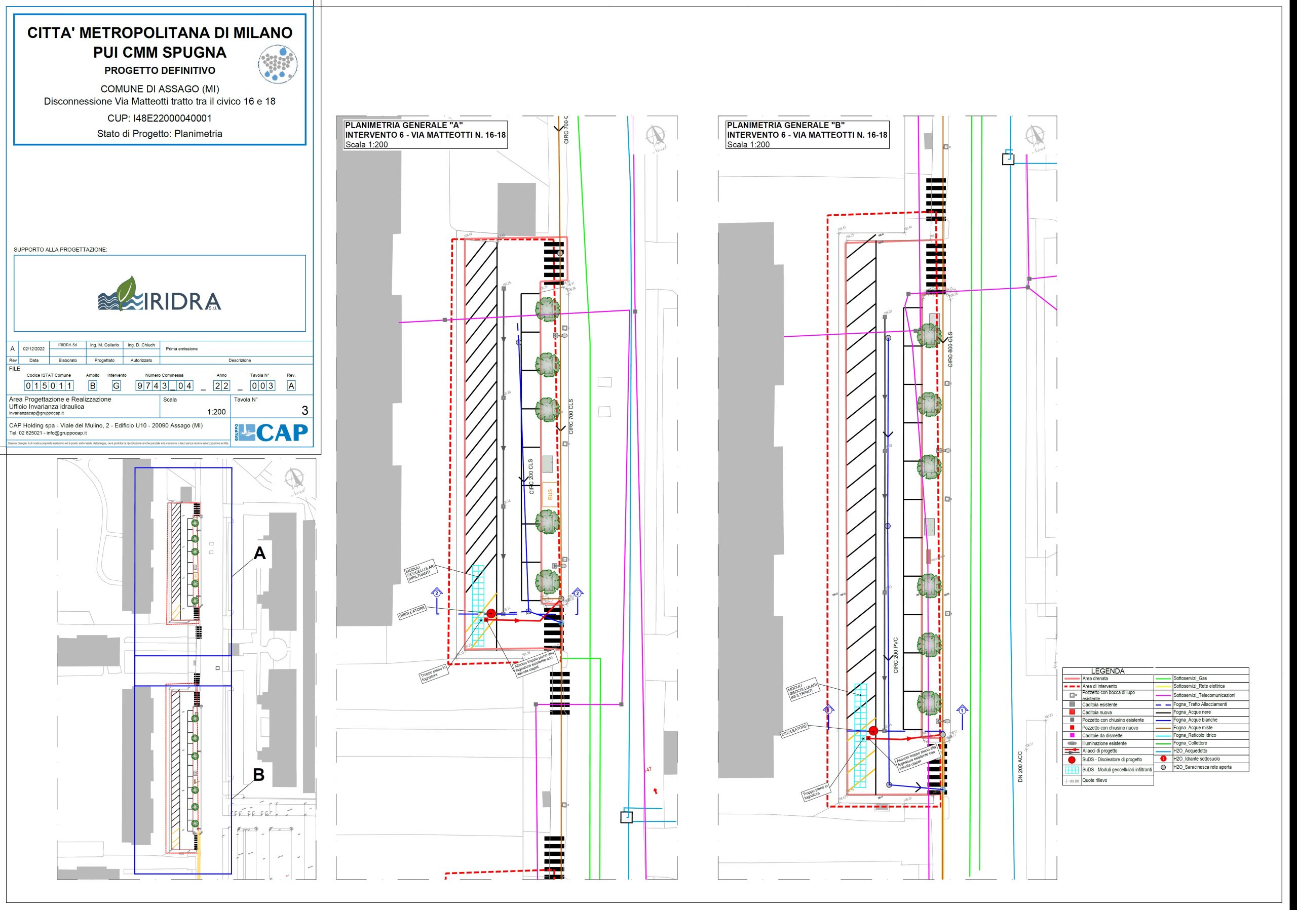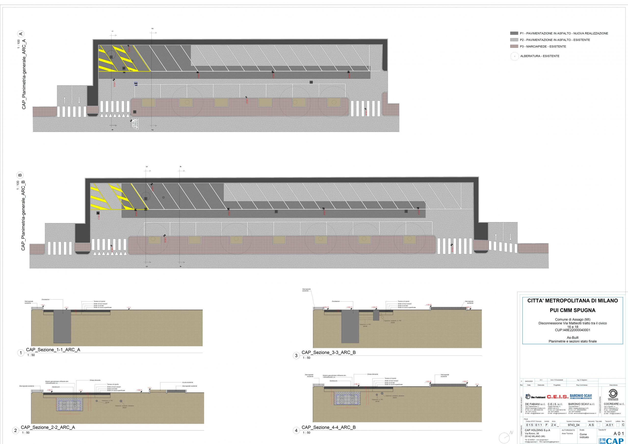 Nell’ambito del progetto PUI CM Spugna, uno degli interventi nel comune di Assago ha riguardato il parcheggio situato in Via Matteotti tra il civico 16 e 18, in una zona residenziale del paese. L’intervento si è incentrato sulla disconnessione delle acque meteoriche che piovono sulla superficie asfaltata del parcheggio, tramite il posizionamento di moduli geocellulari infiltranti nel sottosuolo. In questo modo le acque piovane vengono raccolte e infiltrate nel sottosuolo e si alleggerisce il sistema di rete fognaria da un carico idrico eccessivo durante eventi meteorici estremi, diminuendo il rischio di allagamenti. Durante l’esecuzione, si è reso necessario apportare alcune modifiche riguardo al posizionamento del disoleatore (che permette di trattare le acque prima di essere disperse nel terreno), a causa di un’interferenza di un allacciamento. Nonostante ciò, i lavori si sono svolti in maniera lineare grazie anche alla collaborazione del Comune della Polizia Locale, che ha seguito da vicino l’intervento in maniera collaborativa per quanto riguarda la segnaletica e la gestione della chiusura del parcheggio. In definitiva, questo intervento rientra a pieno titolo tra i SuDS, dimostrando come anche soluzioni basate su infrastrutture grigie possano contribuire efficacemente alla gestione delle acque meteoriche in ambito urbano, rendendo il territorio più resiliente.