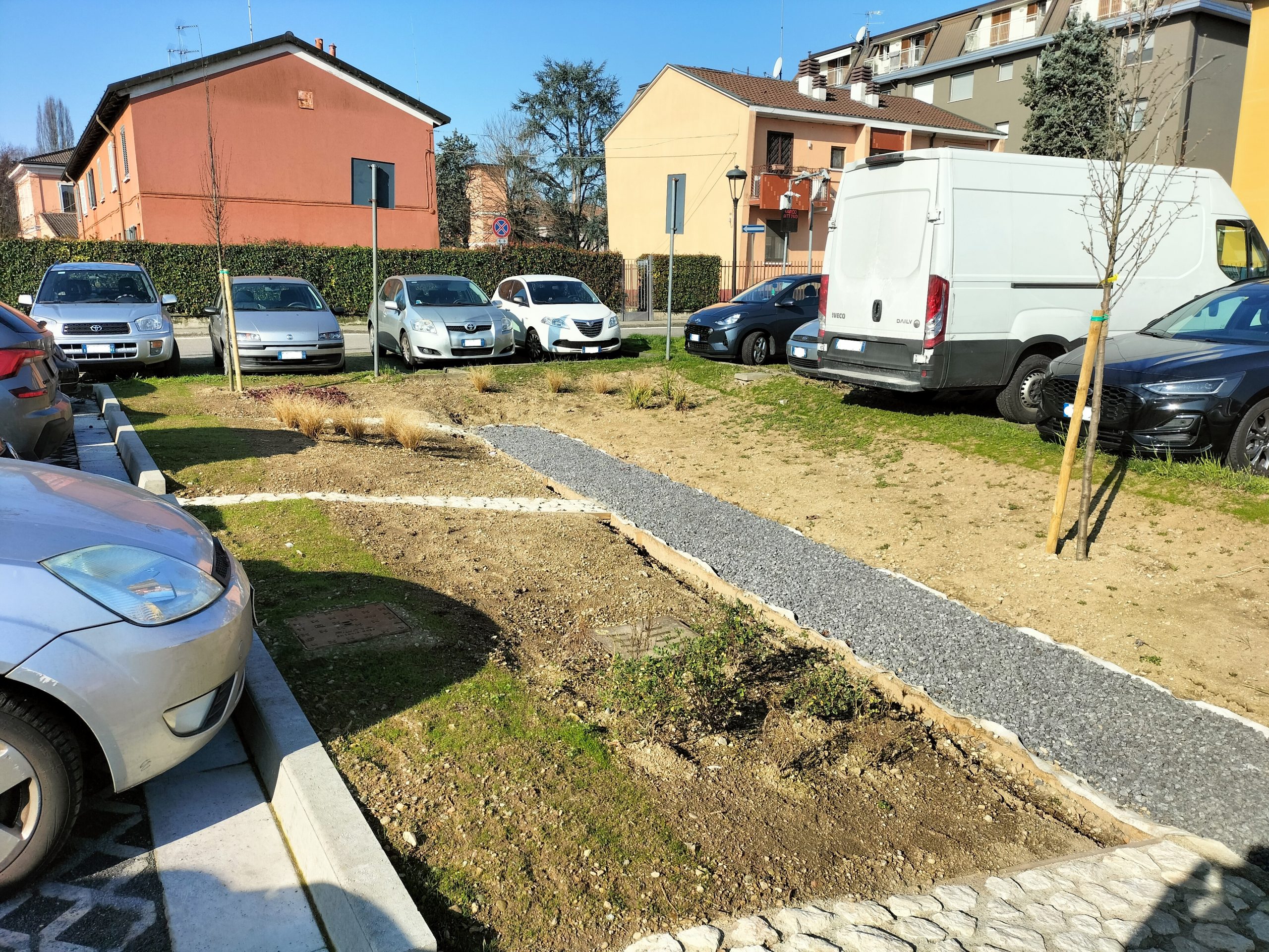 via I Maggio: Parcheggio con trincea drenante: un esempio di adattamento