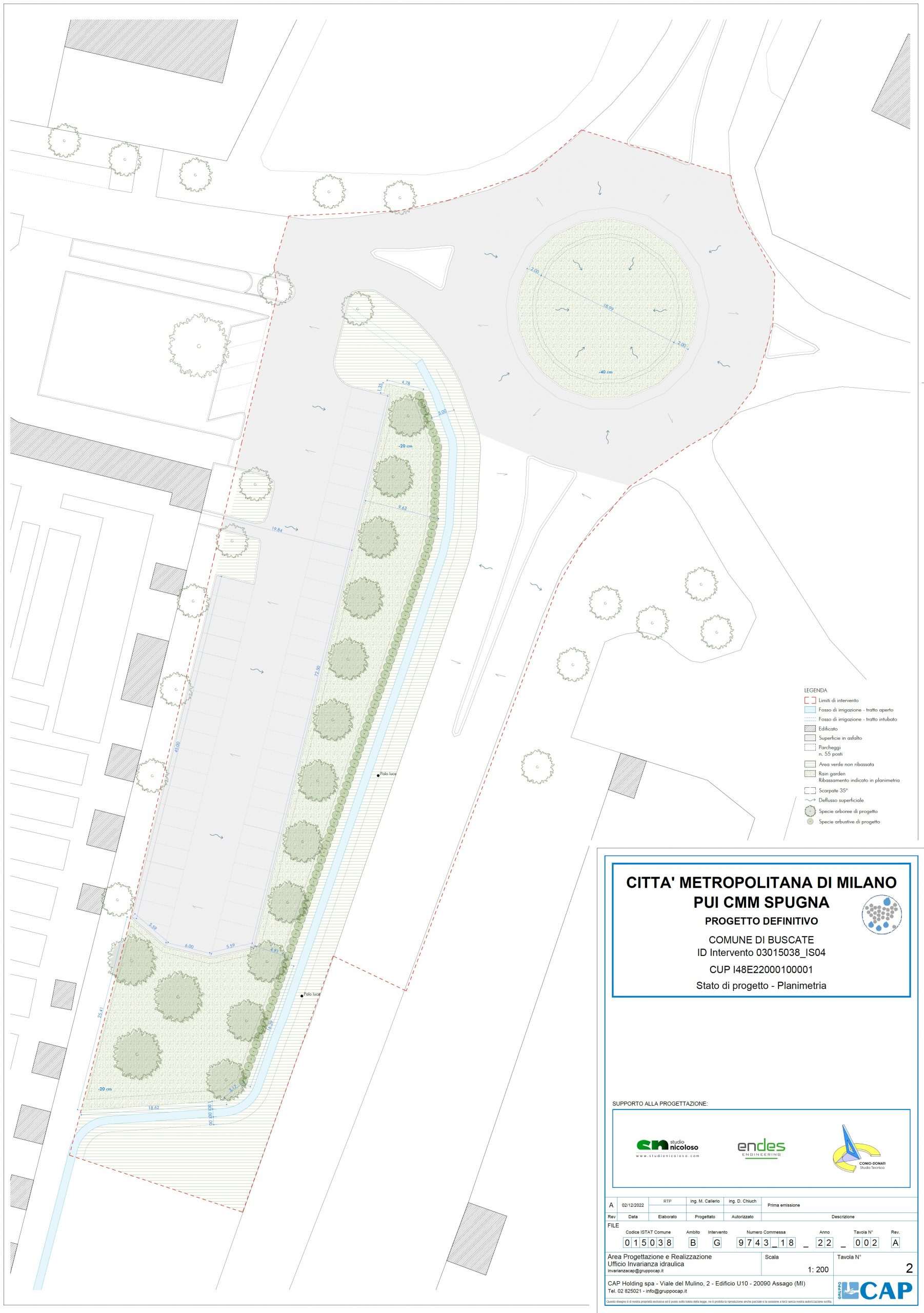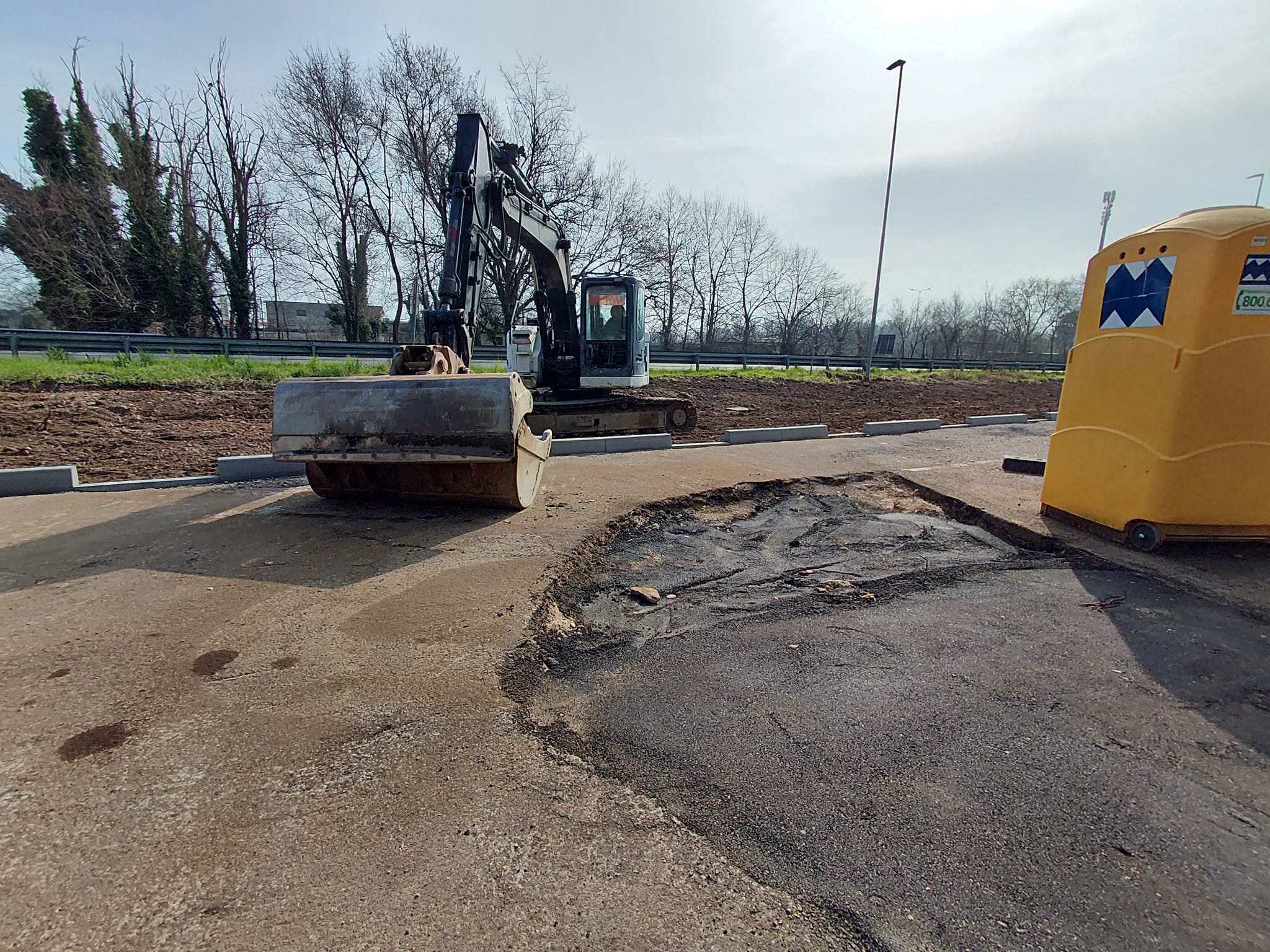 L’intervento prevede che le acque meteoriche provenienti dal parcheggio vengano convogliate, grazie ad una pendenza appositamente progettata, verso alcune aree di rain garden. Queste zone di bioritenzione permettono di raccogliere, trattenere e favorire l’infiltrazione naturale dell’acqua nel terreno. Nel caso in cui la capacità di assorbimento del rain garden venga superata durante eventi di pioggia intensa, entra in funzione un sistema di troppo pieno che garantisce il corretto smaltimento delle acque in eccesso. All’interno della rotonda che si trova davanti al parcheggio, è stata inoltre inserita una tubazione drenante, pensata per migliorare ulteriormente la gestione idraulica dell’area.