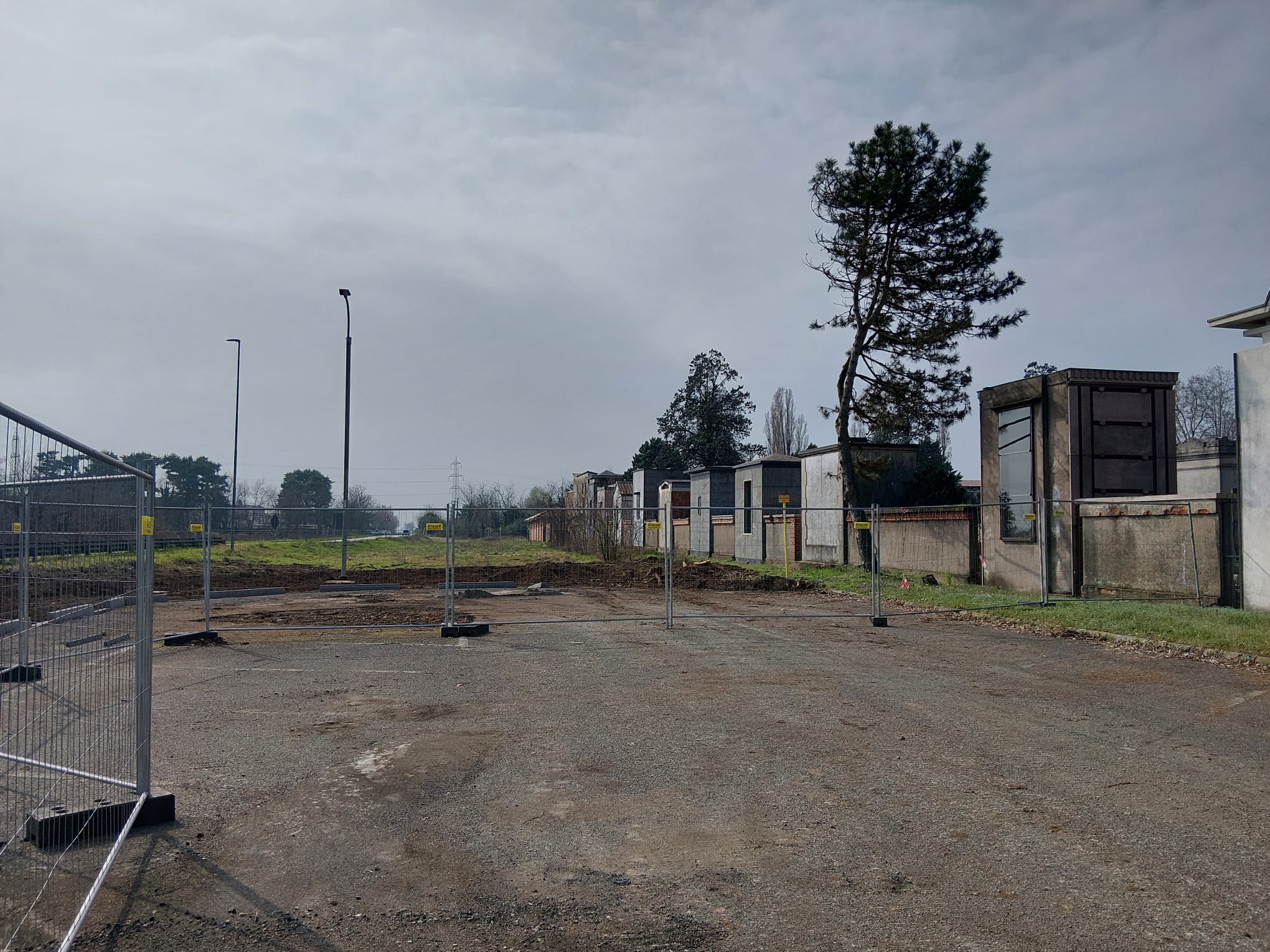 Su impulso dell’amministrazione locale, l’area del parcheggio situata di fronte al cimitero è stata oggetto di un intervento di riqualificazione orientato alla gestione sostenibile delle acque meteoriche. In origine lo spazio era interamente asfaltato e caratterizzato da una forte impermeabilizzazione del suolo. Con il progetto si è scelto di introdurre soluzioni basate sulla natura (NBS) e sistemi di drenaggio urbano sostenibile (SuDS), capaci di migliorare il deflusso delle acque piovane e ridurre il carico sulla rete fognaria.