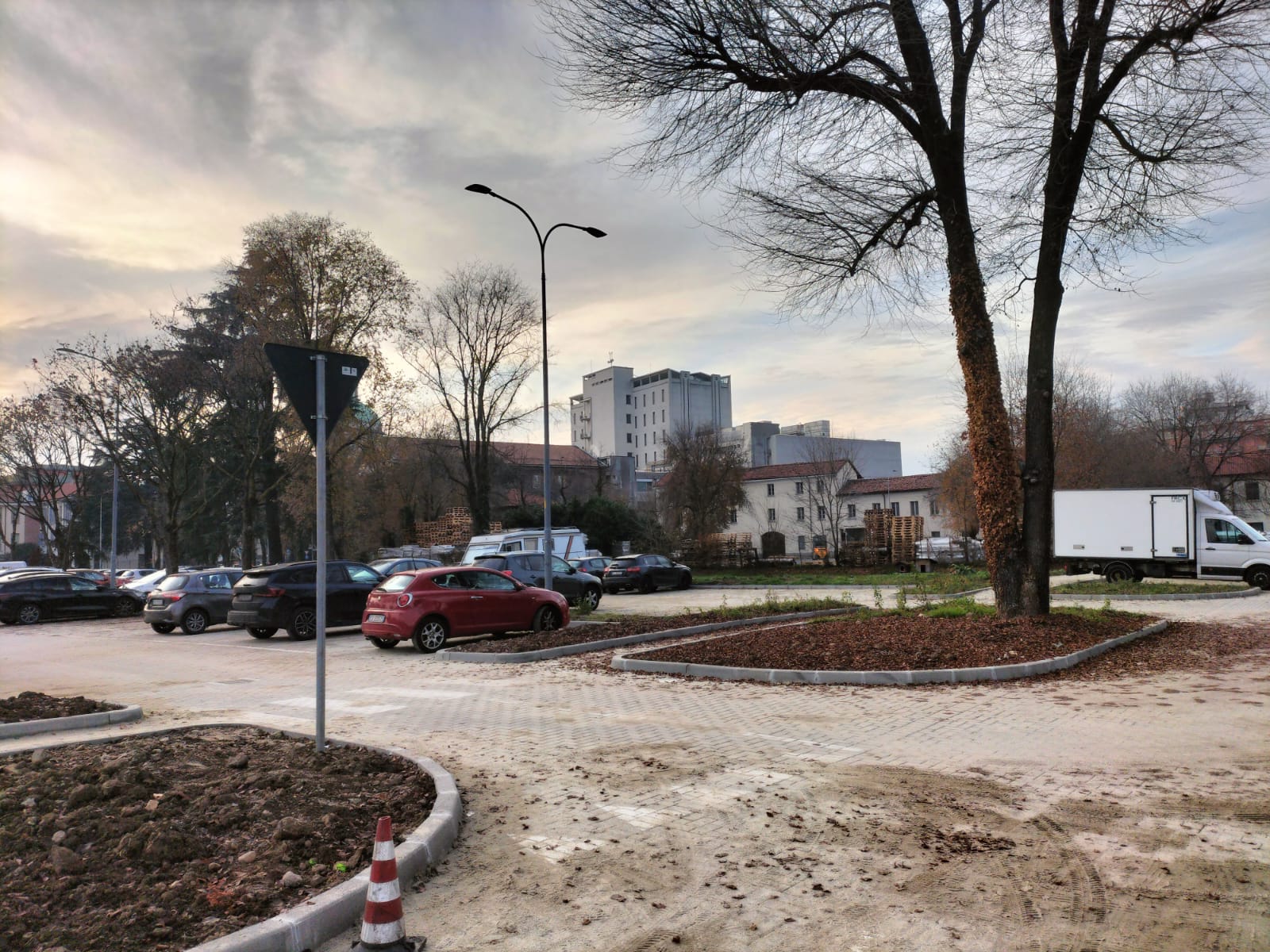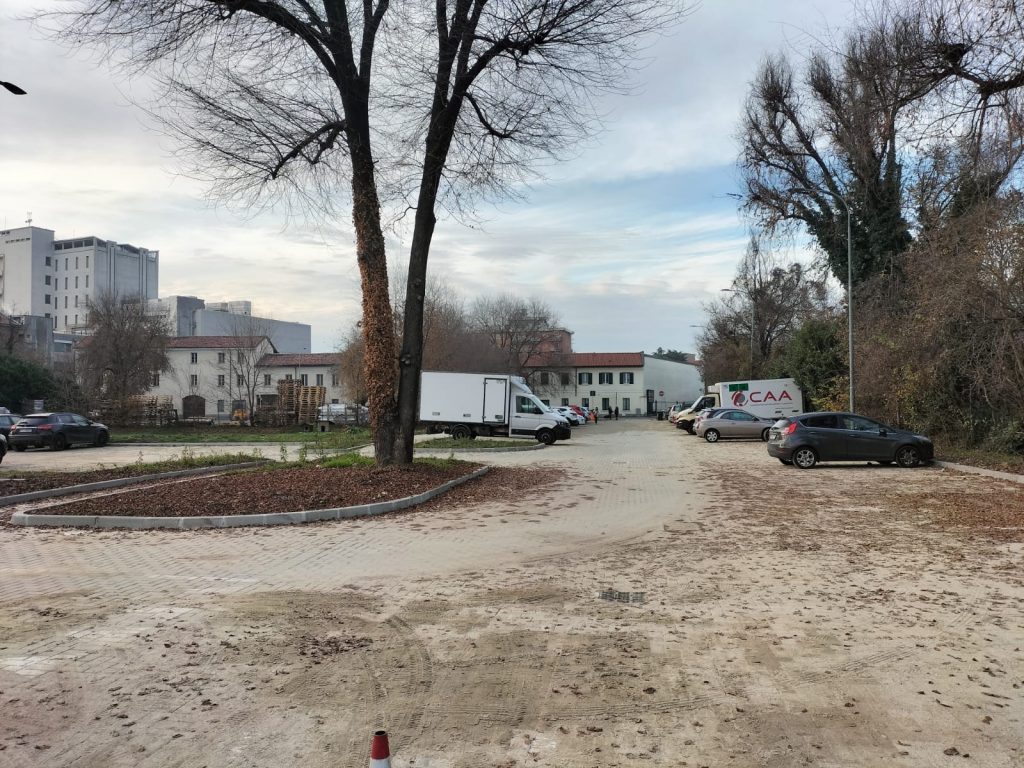 L’ambito comprende un ampio parcheggio che si presentava con asfalto ammalorato e sistemi di drenaggio tradizionali. La vecchia superficie in asfalto è stata sostituita con una pavimentazione in autobloccanti drenanti. Questo sistema permette alle acque di prima pioggia di infiltrarsi direttamente nel sottosuolo, oltre che di essere convogliate in apposite celle di accumulo. Inoltre, lungo il fronte stradale è stata installata una condotta dedicata alla raccolta delle acque provenienti dalle caditoie. Per garantire la qualità dell’acqua rilasciata nel suolo, sotto l’area del parcheggio sono stati integrati sistemi di trattamento quali un dissabbiatore e un disoleatore.