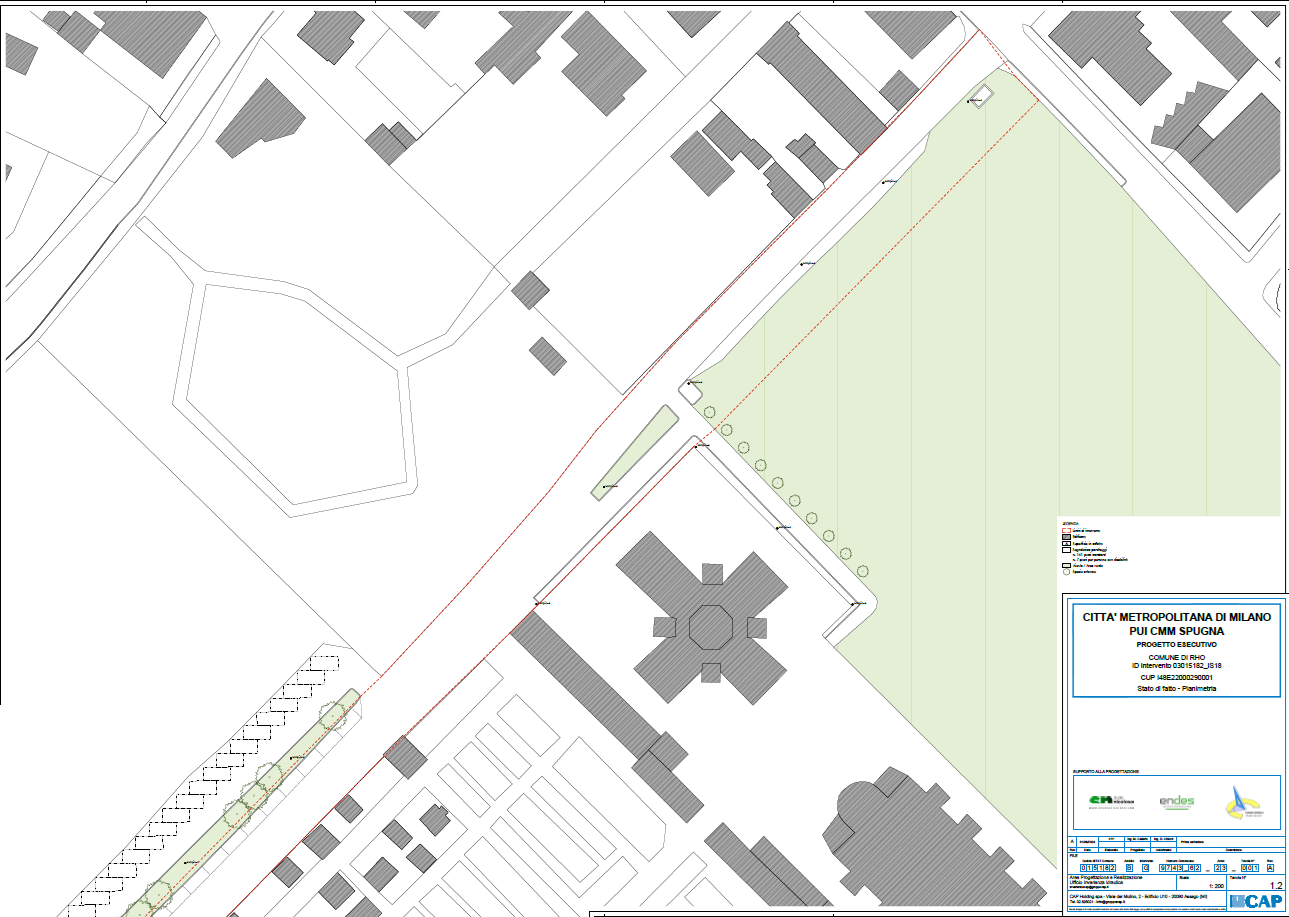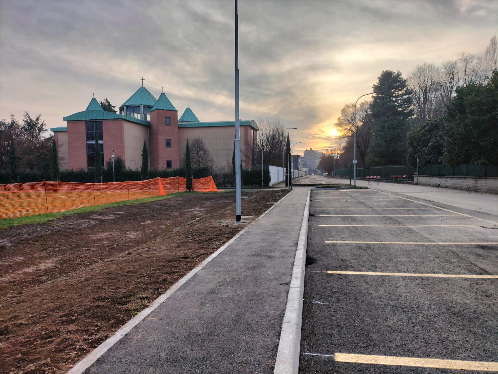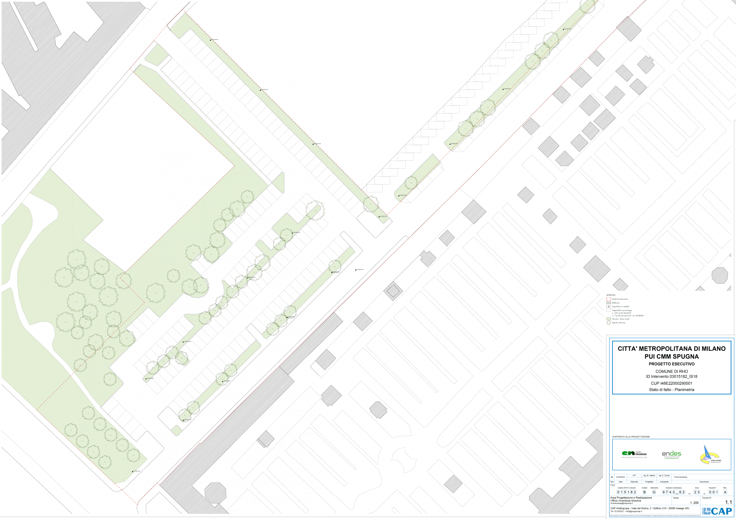 Nel comune di Rho, in un’area urbana residenziale ricca di servizi e nei pressi del cimitero centrale di via Redipuglia, è stato realizzato un intervento molto esteso che comprende due aree adiacenti, con l’obiettivo di trasformare l’ambito attraverso l’adozione di Nature-Based Solutions (NBS) e sistemi di drenaggio urbano sostenibile (SuDS), migliorando la gestione delle acque meteoriche e il decoro urbano.