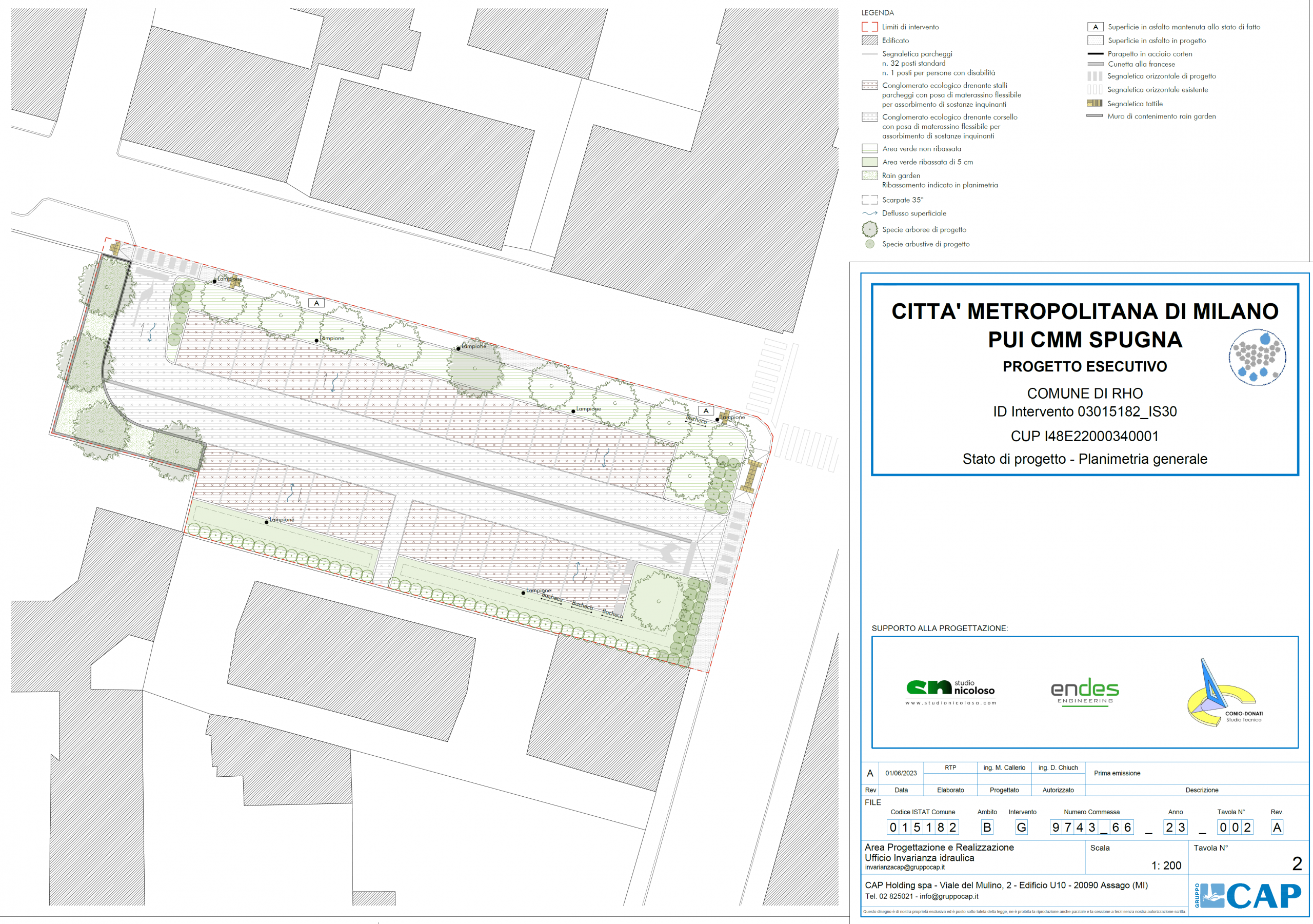 La riqualificazione del parcheggio situato in Via Conciliazione, all’angolo con Via Cardinal Ferrari, in un contesto urbano prevalentemente residenziale caratterizzato dalla presenza di numerosi servizi di prossimità, è stata realizzata attraverso soluzioni di drenaggio urbano sostenibile.